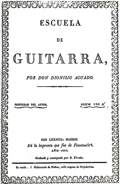 A different attitude to arpeggiation arrived in the French capital c. 1826 with the publication of the second Spanish edition of the Escuela of Dionisio Aguado and its French translation by François de Fossa. In the first known guitar method of Aguado, the Escuela of 1825, Aguado refers to blocked chords as “accordes simultaneos”. He says: