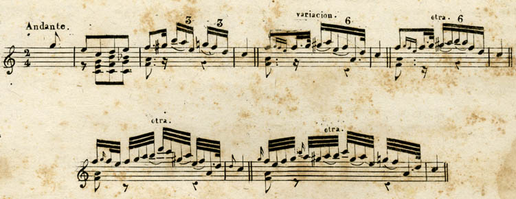 There are several other inferences we can make regarding Sor’s apparent agreement with Aguado. The most striking in my opinion, is Sor’s silence regarding Aguado’s description of the process of improvisation in the performance of music by Sor. In the section of the Escuela which deals with “expression”, (Aguado’s name for what we call today “Performance practice”), he gives an example from one short segment from the Fantaisie op. 7 by Sor, and shows four different ways the passage can be improvised upon.