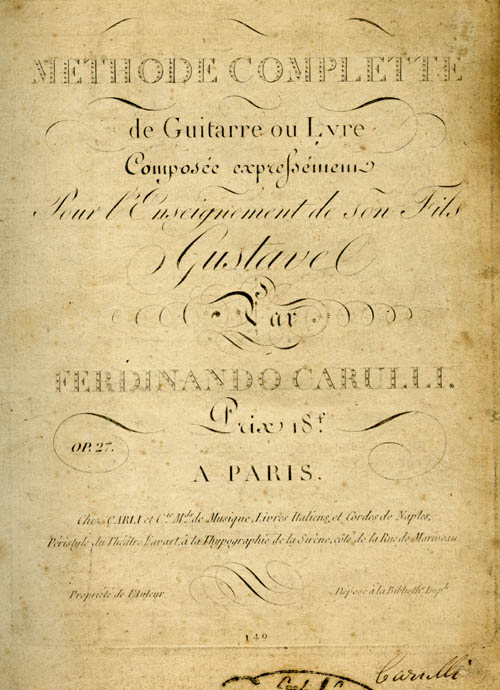 A rather similar point of view was expressed, at about the same time, by Ferdinando Carulli. In the first edition of his method op. 27 from 1810 Carulli says: