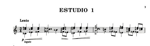 As many guitarists, I learned to play the piece early in my career as a guitarist, some fifty-five years ago. Having compared the sound picture produced by playing the study in complete legato with a literal reading of the Segovia edition, the only edition available to me then, I found that it made perfect sense and I accepted it. My readiness to accept this way of hearing and thinking about this music, I must admit, was based on a purely subjective frame of mind. For all intents and purposes, it was just as valid as any other way of playing. I had no way of knowing if the idea corresponded to the composer’s point of view. The question itself was not part of my regular concerns at the time. This was not the time to question the validity of anything which bore the Segovia imprint. There was no way of knowing then, that the indicationlegato at the beginning of this study in the Segovia edition was not an original indication by the composer, and that the tempo indication of Lento was an editorial change made by Segovia from the original Andantino.